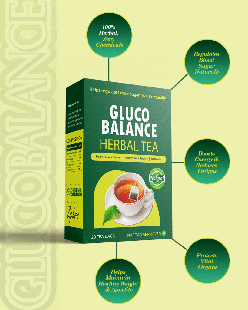 No more sudden tiredness, no more dizzy spells. Our Gluco Balance Herbal Tea helps your sugar level stay where it should be — balanced and steady, just the way your body likes it.